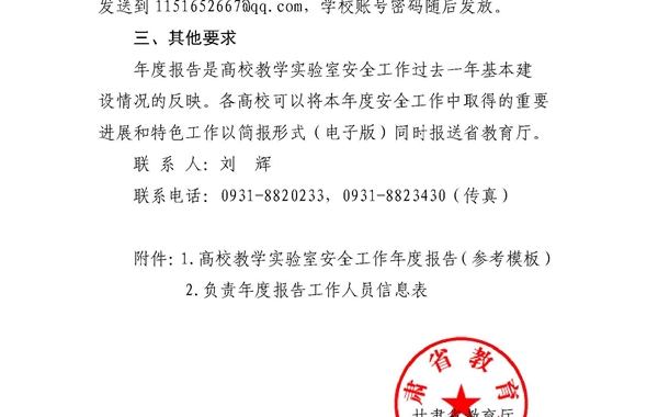 甘肅省教育廳關于做好2018年度高校教學實驗室安全工作年度報告的通知