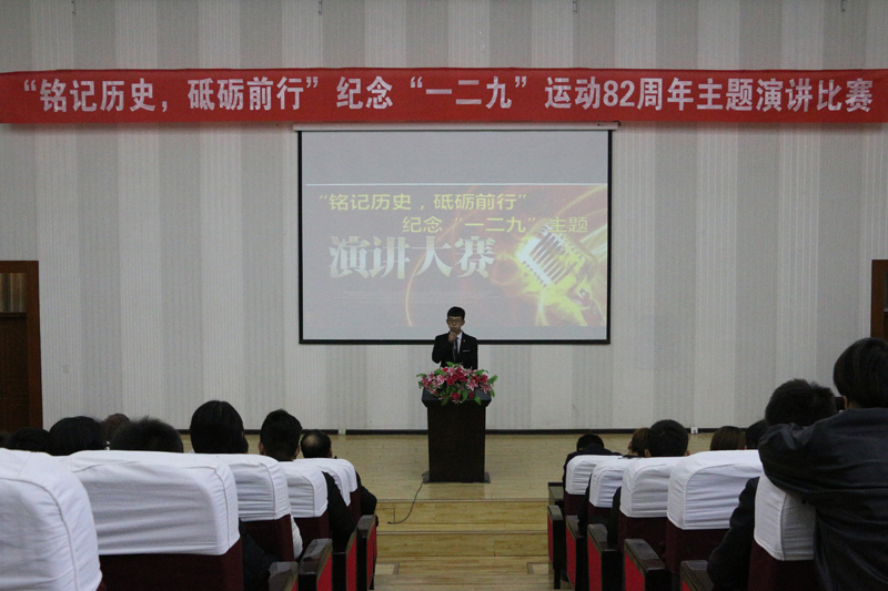 為紀念一二·九學生愛國運動82周年,弘揚新時代學生愛國主義精神,12月8日下午,能源工程系在正德廳舉行了“銘記歷史砥礪前行”主題演講比賽,系上全體師生參加此次活動。