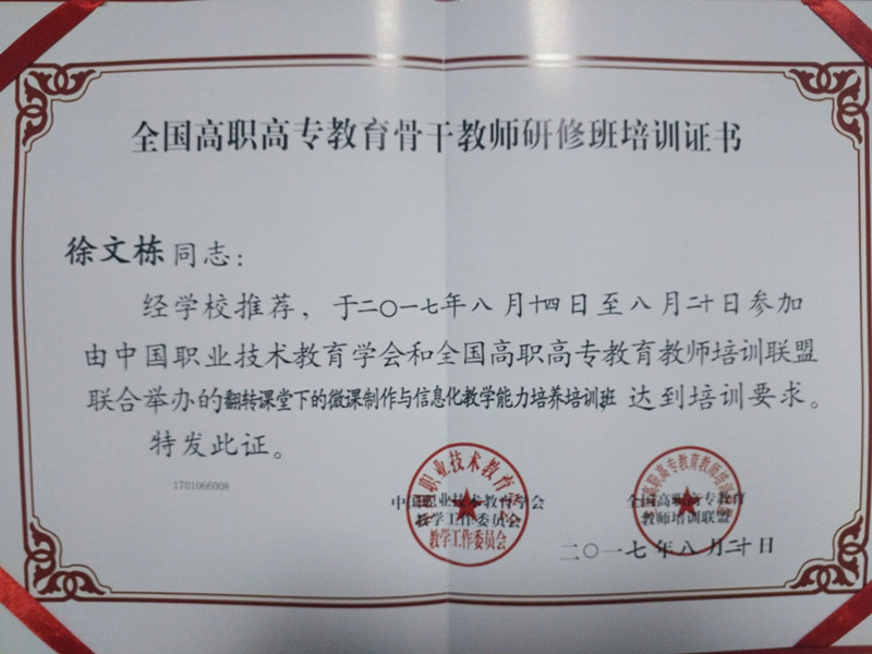 優(yōu)質(zhì)校建設之高校教師教學能力、信息技術與專業(yè)素養(yǎng)提升高級培訓班總結及證書——徐文棟