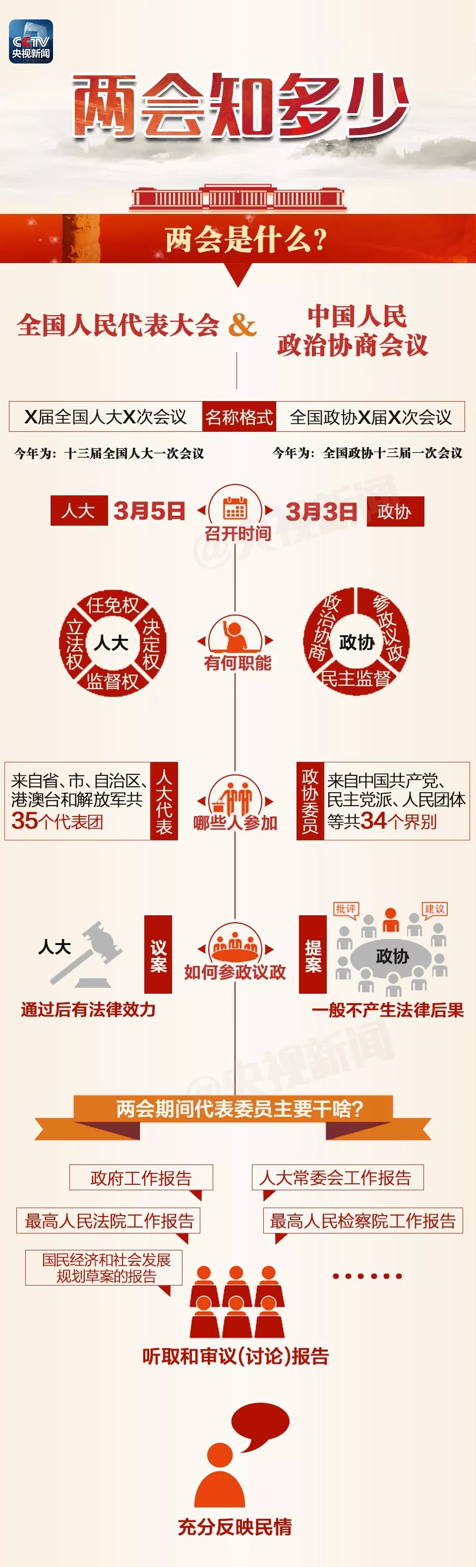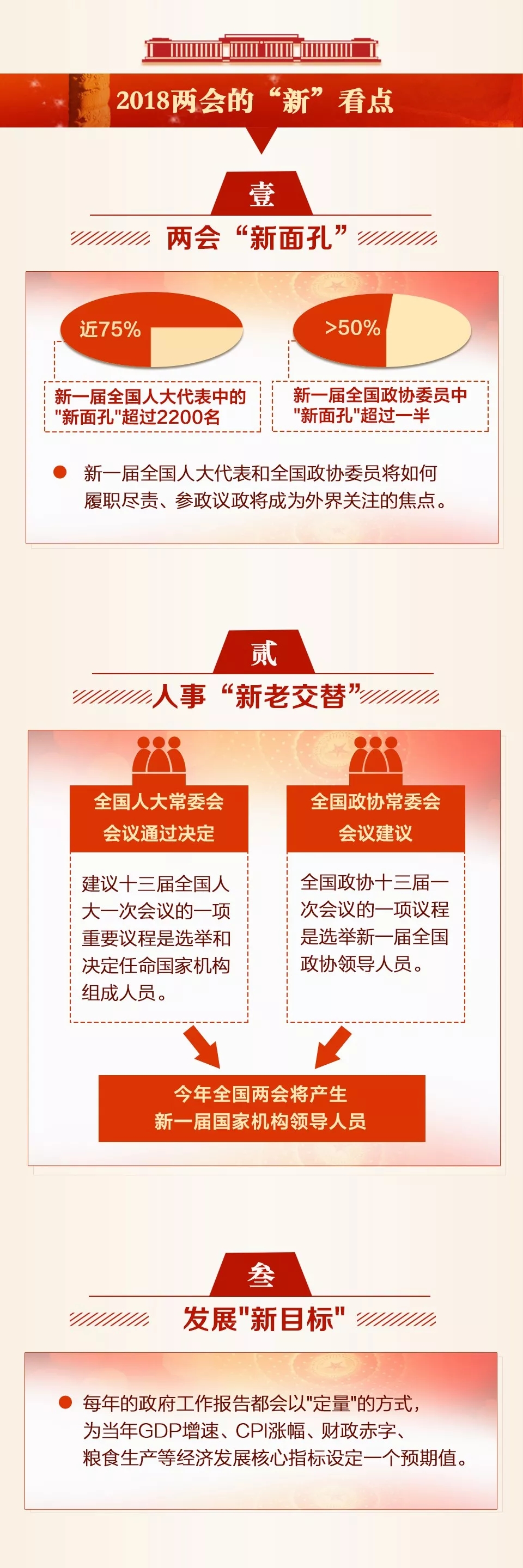 全國(guó)兩會(huì)年年開(kāi),但你知道這兩個(gè)“會(huì)”有何不同嗎?今年兩會(huì),除了新一屆全國(guó)人大代表和全國(guó)政協(xié)委員首次亮相之外,又有哪些值得關(guān)注的看點(diǎn)?一起看下面這張圖,提前了解2018年全國(guó)兩會(huì)。