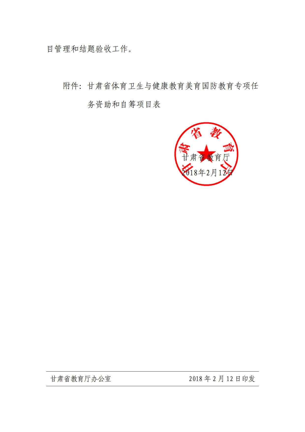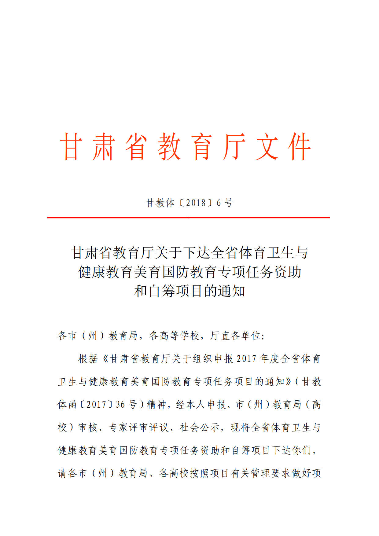 甘肅省教育廳關于下達全省體育衛(wèi)生與健康教育美育國防教育專項任務資助和自籌項目的通知-正文