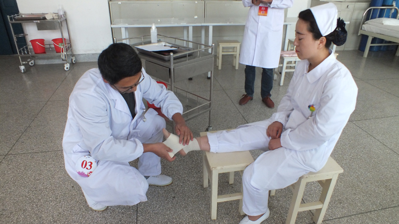 本次比賽分為初賽和復(fù)賽兩部分,初賽內(nèi)容為專(zhuān)業(yè)理論知識(shí)及病例分析,復(fù)賽內(nèi)容為心肺復(fù)蘇、右踝關(guān)節(jié)扭傷包扎、密閉式靜脈輸液等3項(xiàng)護(hù)理技能操作,參賽的同學(xué)們?cè)诒荣愔姓宫F(xiàn)出熟練的操作技能,檢驗(yàn)了同學(xué)們的理論實(shí)踐能力,為實(shí)習(xí)和以后的工作奠定了良好的基礎(chǔ)。此次技能競(jìng)賽對(duì)激發(fā)我系學(xué)生學(xué)習(xí)興趣,加強(qiáng)學(xué)風(fēng)建設(shè),營(yíng)造專(zhuān)業(yè)特色,提高同學(xué)們的臨床實(shí)踐操作能力和培養(yǎng)良好的職業(yè)素養(yǎng)具有重要的意義。