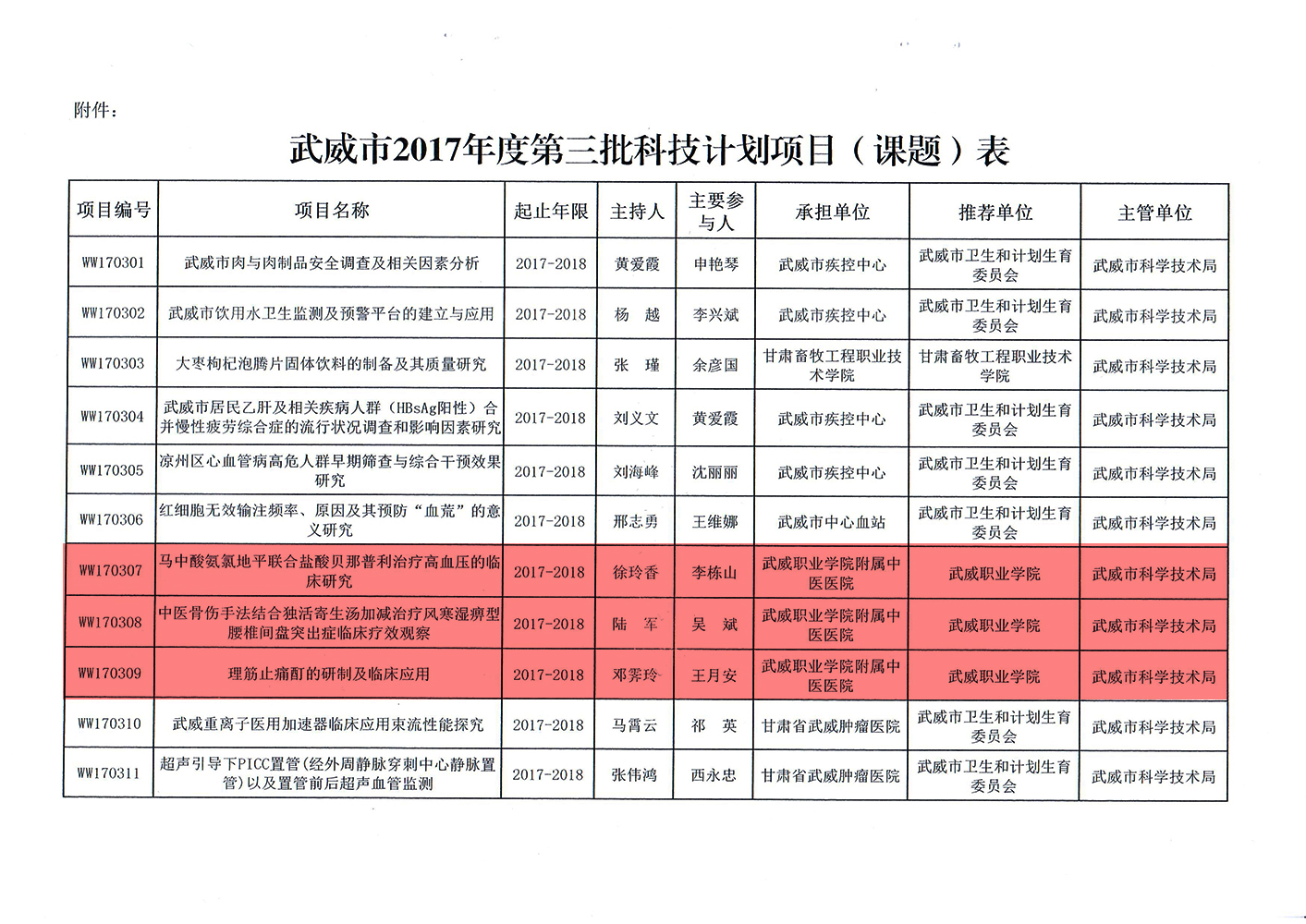轉(zhuǎn)發(fā)武威市科學技術(shù)局關(guān)于下達武威市2017年度第三批市列科技計劃項目的通知