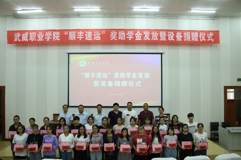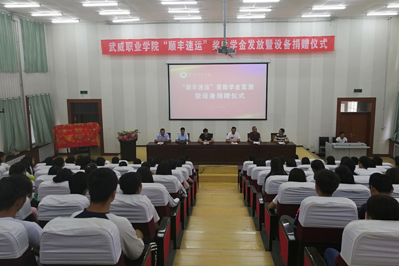 6月26日,武威職業(yè)學(xué)院“順豐速運”獎助學(xué)金發(fā)放暨設(shè)備捐贈儀式在學(xué)院正德廳舉行。江蘇順豐速運江蘇順豐通訊服務(wù)有限公司副總經(jīng)理張輝華先生,武威職業(yè)學(xué)院黨委委員、副院長王永緒同志、江蘇順豐通訊服務(wù)有限公司人力資源部經(jīng)理孫潞、項目經(jīng)理高國軍、招聘經(jīng)理明微、經(jīng)濟管理系書記潘從民、主任張伯成、物流專業(yè)教師代表和物流專業(yè)16、17級全體同學(xué)及相關(guān)專業(yè)學(xué)生代表近200人參加本次儀式。發(fā)放儀式由潘從民主持。