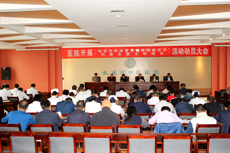 院長曹生有主持大會,黨委書記陳鋼代表醫(yī)院作“轉變作風改善發(fā)展環(huán)境建設年”和“創(chuàng)建全國文明城市”活動動員講話。副院長毛照海傳達《甘肅省深入開展“轉變作風改善發(fā)展環(huán)境建設年”活動實施方案》;副院長宗武三宣讀《武威職業(yè)學院直屬附屬醫(yī)院關于成立助推全國文明城市創(chuàng)建工作領導小組的通知》;副院長張仁德宣讀《武威職業(yè)學院直屬附屬醫(yī)院創(chuàng)建全國文明城市三年規(guī)劃實施方案》;工會主席李文輝宣讀《武威職業(yè)學院直屬附屬醫(yī)院2018年創(chuàng)建全國文明城市規(guī)劃實施方案》。