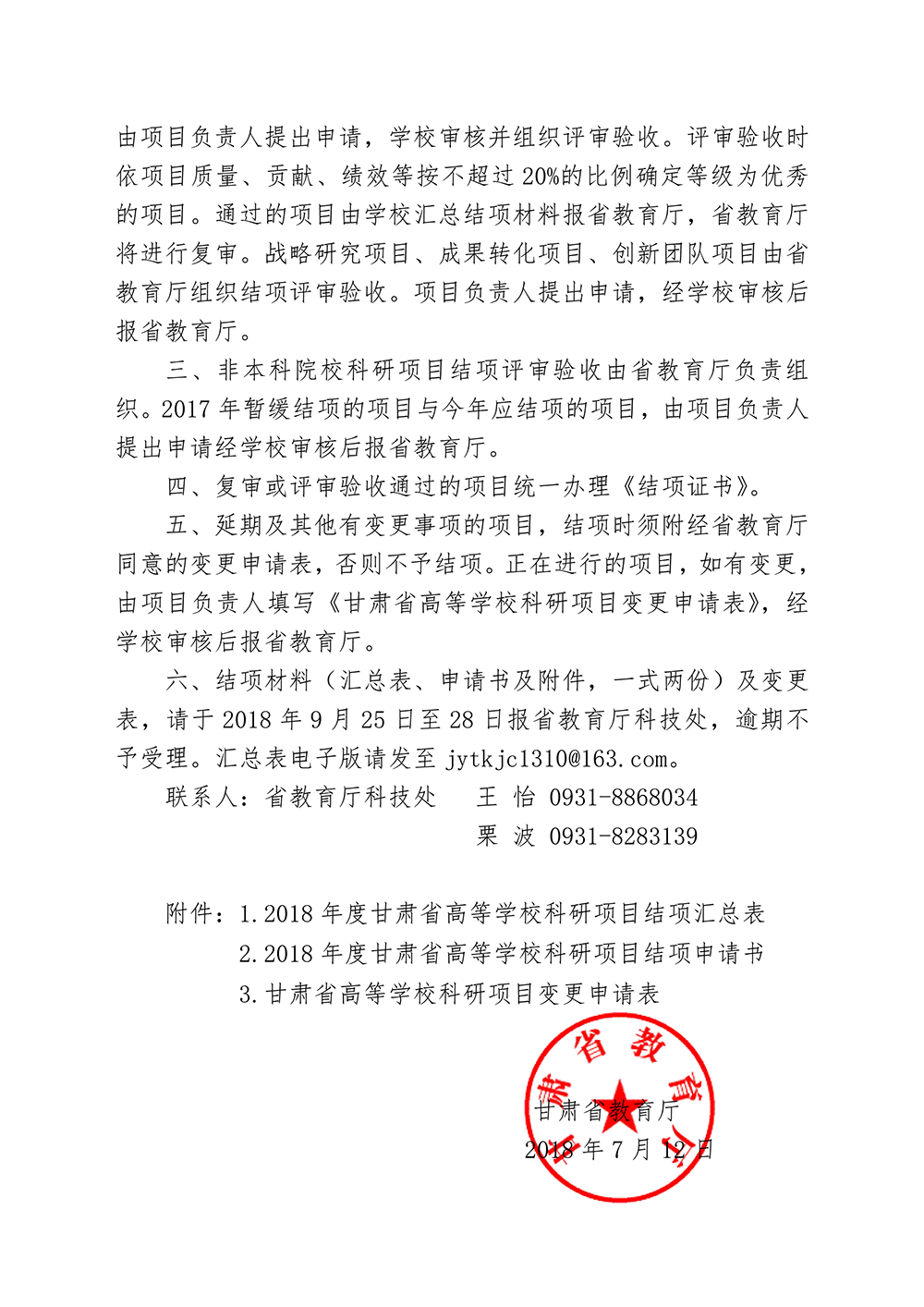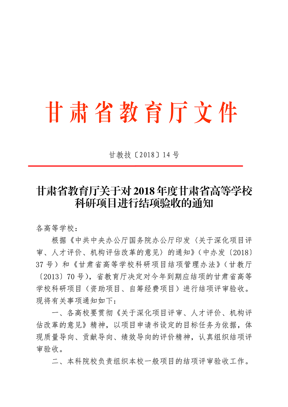 甘肅省教育廳關(guān)于對2018年度甘肅省高等學校科研項目進行結(jié)項的通知(附件).doc