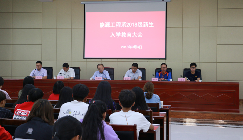 9月3日下午,能源工程系在行樹樓北側(cè)報告廳舉行2018級新生入學(xué)教育大會,全系教師及2018級166名新生參加了此次大會。會議由能源工程系政治輔導(dǎo)員、團(tuán)總支書記侯舵主持。