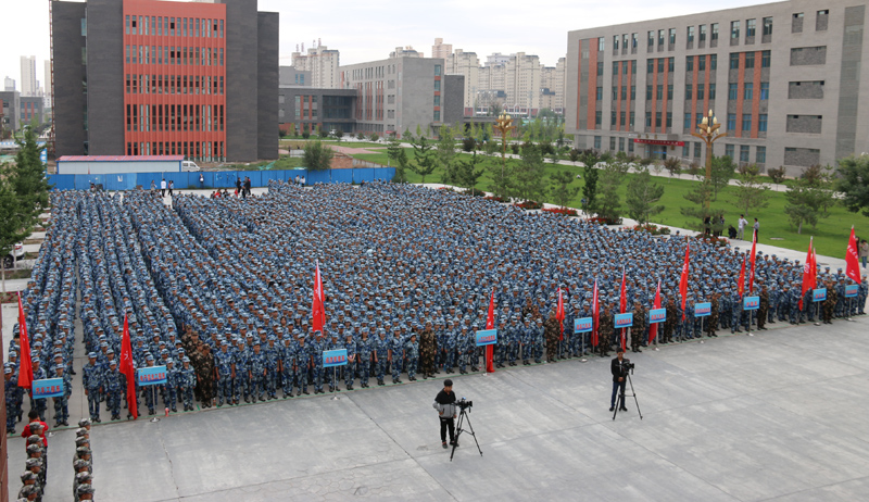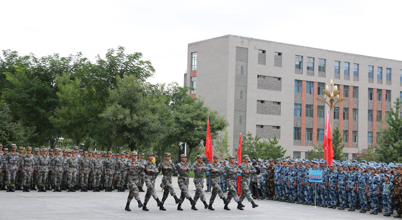 大會現(xiàn)場,田迎春向承訓(xùn)單位授予軍訓(xùn)團旗。大會在雄壯的《中國人民解放軍軍歌》聲中拉開了軍訓(xùn)序幕。
