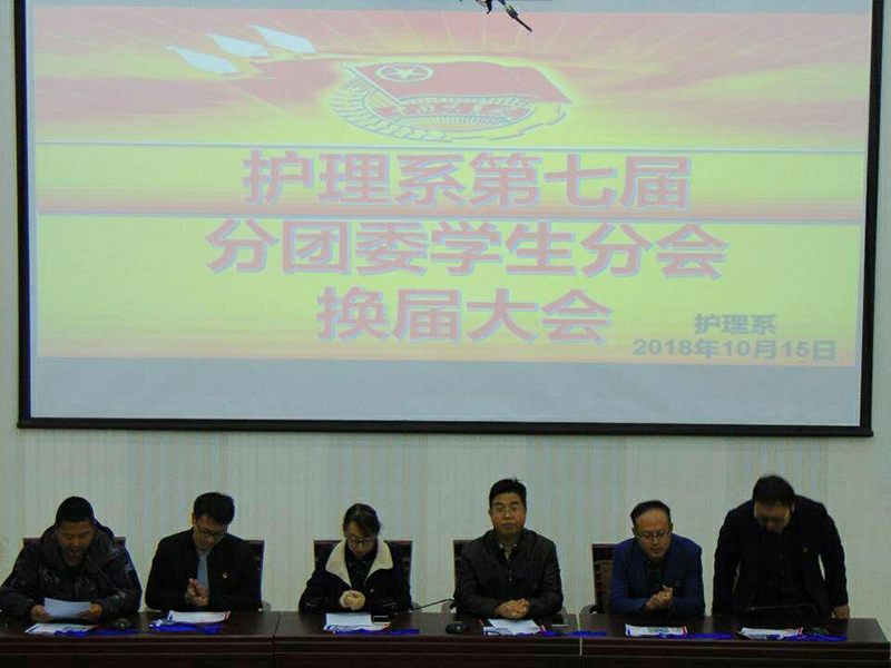 近日護(hù)理系分團(tuán)委學(xué)生分會第七屆換屆選舉于正德廳順利召開,護(hù)理系黨總支書記張建輝、系主任韓曉萍、系分團(tuán)委書記楊杰、輔導(dǎo)員寇明赟、張前、龐大勇,2017級、2018級團(tuán)干部出席了本次大會。