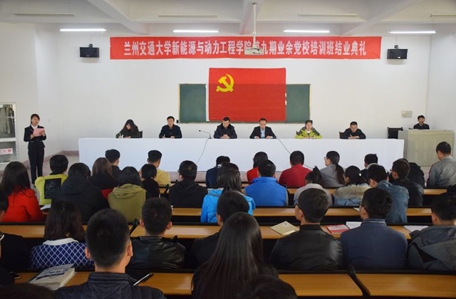 結業(yè)典禮由任陶主持。高蕊宣讀了《蘭州交通大學新能源與動力工程學院關于第九期業(yè)余黨校培訓班結業(yè)情況的通報》。本次培訓歷時半個多月,共有120名學員參加培訓,保證24學時的教學。通過課堂紀律、上課考勤、撰寫心得體會和結業(yè)考試等方面的考查,共有40名擬發(fā)展對象和73名入黨積極分子成績合格,予以結業(yè),合格率為94.17%。任陶宣讀了本次培訓成績合格的學員名單。學員代表孟杰同學在發(fā)言中總結了在業(yè)余黨校學習的收獲,表示在今后要努力學習,積極工作,嚴格要求自己,明確追求與理想,不懈拼搏,爭取早日成為一名光榮的中國共產(chǎn)黨黨員。