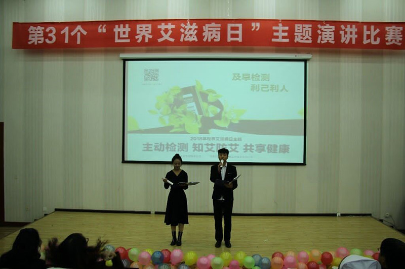 11月25日,在學(xué)院正德廳舉行了有關(guān)艾滋病防治知識的主題演講比賽。武威市疾控中心科長王永瑚、武威職業(yè)學(xué)院護理系黨總支書記張建輝、主任韓曉萍及17、18級學(xué)生代表參加了此次活動。比賽中,參賽選手有的從自身的生活環(huán)境出發(fā),有的以關(guān)鍵事件為例,有的以成長軌跡為線,用專業(yè)的數(shù)據(jù)、詳實的資料、精美的PPT,以多樣化的視角,全面深入地宣講了艾滋病防治知識。韓曉萍對參賽者的表現(xiàn)逐一進行了點評,并高度肯定了舉辦此次演講比賽活動的意義,使選手和觀眾都獲益匪淺。經(jīng)過激烈的比賽,最終2017級助產(chǎn)3班何樂的演講《為了“愛”拒絕“艾”》獲得一等獎。