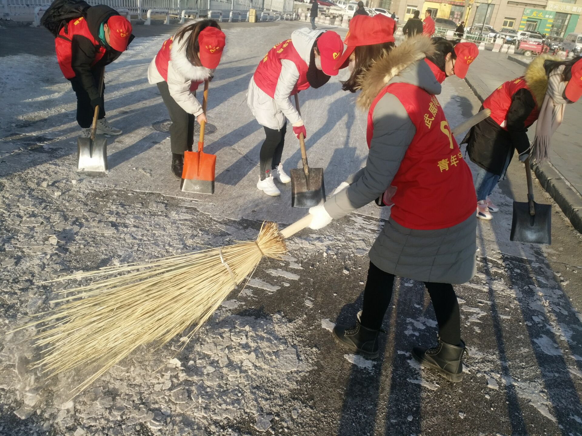 當(dāng)天上午,志愿者們攜著冬日的暖陽將愛撒播在的服務(wù)的每一個(gè)角落,忙的不亦樂乎。學(xué)生志愿者一個(gè)個(gè)身穿紅馬夾穿梭在火車站及汽車站一帶幫助行人提東西、拉皮箱,清掃路面積雪、清除街道長期殘留的垃圾等。志愿者們用自己的雙手拾撿著行人留下的煙頭和瓜子皮,他們不畏嚴(yán)寒,默默地奉獻(xiàn)著熱情和溫暖。經(jīng)過的人們紛紛向志愿者們投向了贊許與致謝的目光。