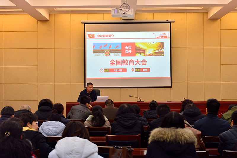 12月21日,教學(xué)部門(mén)召開(kāi)“學(xué)習(xí)全國(guó)教育大會(huì)精神”宣講對(duì)談會(huì)。教務(wù)處、學(xué)工處、招就處、科研處、保衛(wèi)處、圖書(shū)館、雙創(chuàng)中心、督導(dǎo)室全體黨員干部參加會(huì)議。