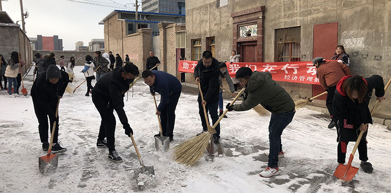經(jīng)濟(jì)管理系黨總支開展“助力創(chuàng)城”清理街道積雪主題黨日活動(dòng)