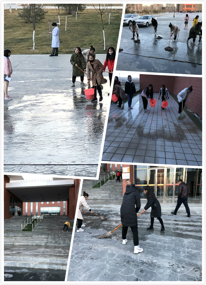 為響應(yīng)武威市創(chuàng)建全國文明城市號召,投身于志愿服務(wù)活動中,11月28日,我系組織了110多名學生志愿者對學生宿舍樓和大學生活動中心室外樓梯平臺進行清理工作。