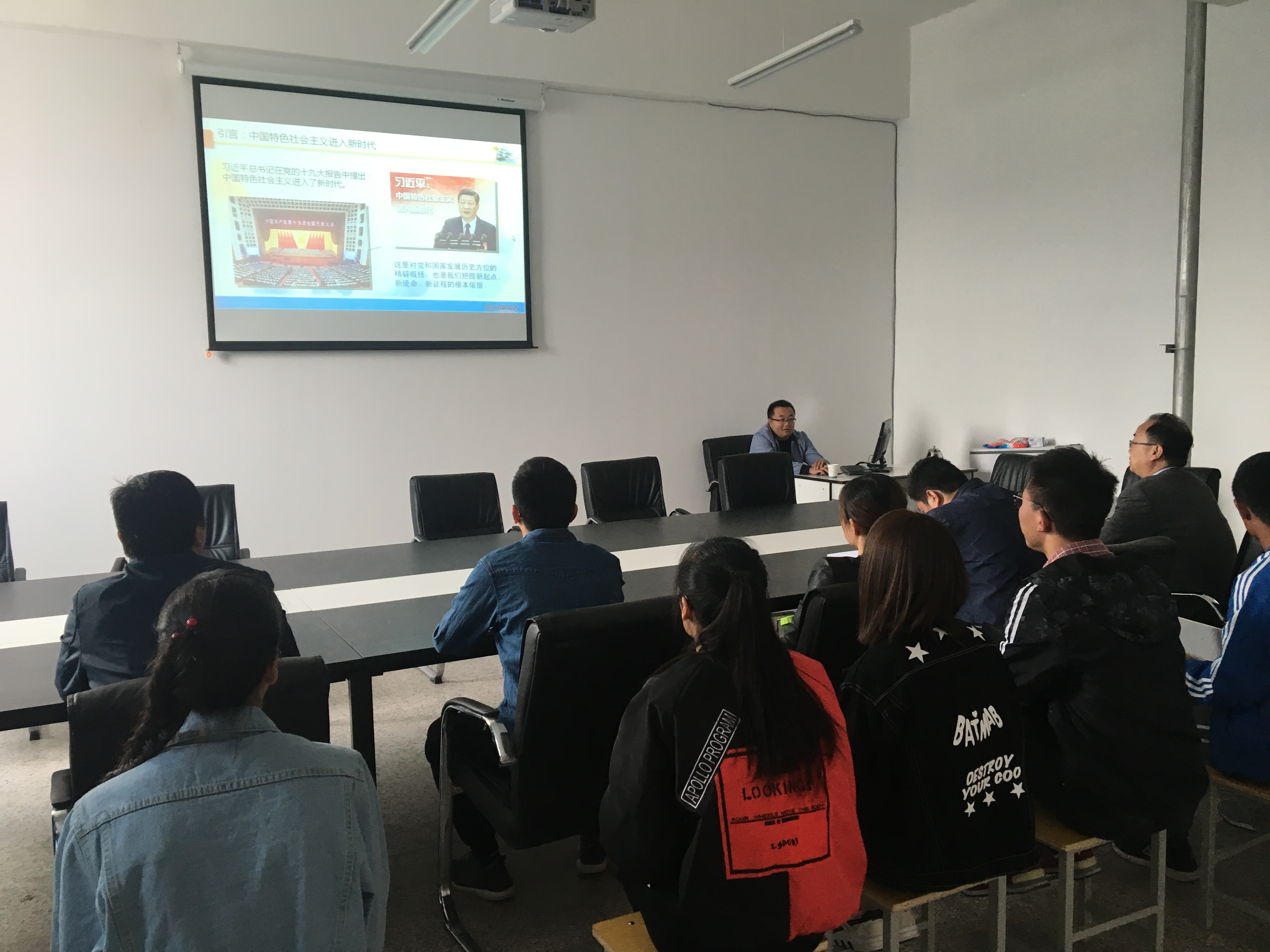 根據(jù)學(xué)院黨委《關(guān)于組織開展深入學(xué)習(xí)貫徹習(xí)近平新時代中國特色社會主義思想和黨的十九大精神主題宣講活動的通知》要求,4月3日下午,能源工程系黨總支組織開展宣講活動,邀請馬克思主義學(xué)院宣講組成員、組織人事處副處長魏全民為系黨總支全體黨員、教師和學(xué)生入黨積極分子進行習(xí)近平新時代中國特色社會主義思想和黨的十九大精神宣講。