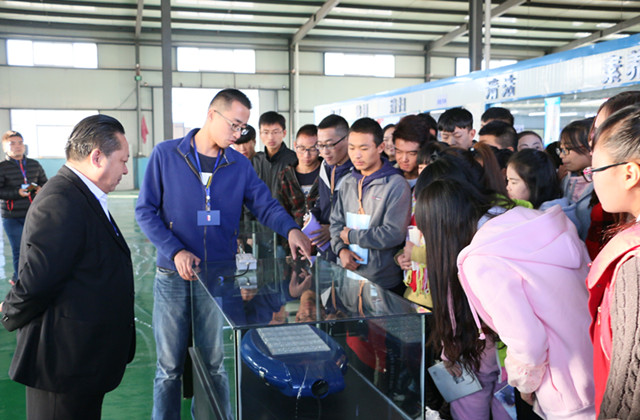在榮寶照明,同學們了解了LED照明、LED路燈等太陽能能源開發(fā)及節(jié)能照明系列產品,參觀了LED封裝車間、路燈制造車間、涂裝車間、總裝車間;在航天萬源,工作人員帶領同學們參觀了風力發(fā)電機的輪轂生產線、主軸生產線、電機生產線并介紹了風力發(fā)電機的原理,風力發(fā)電機各部件生產流程;在甘肅建投,同學們參觀了風電設備、光伏產品、治沙設備的生產制造車間及相關工藝流程。