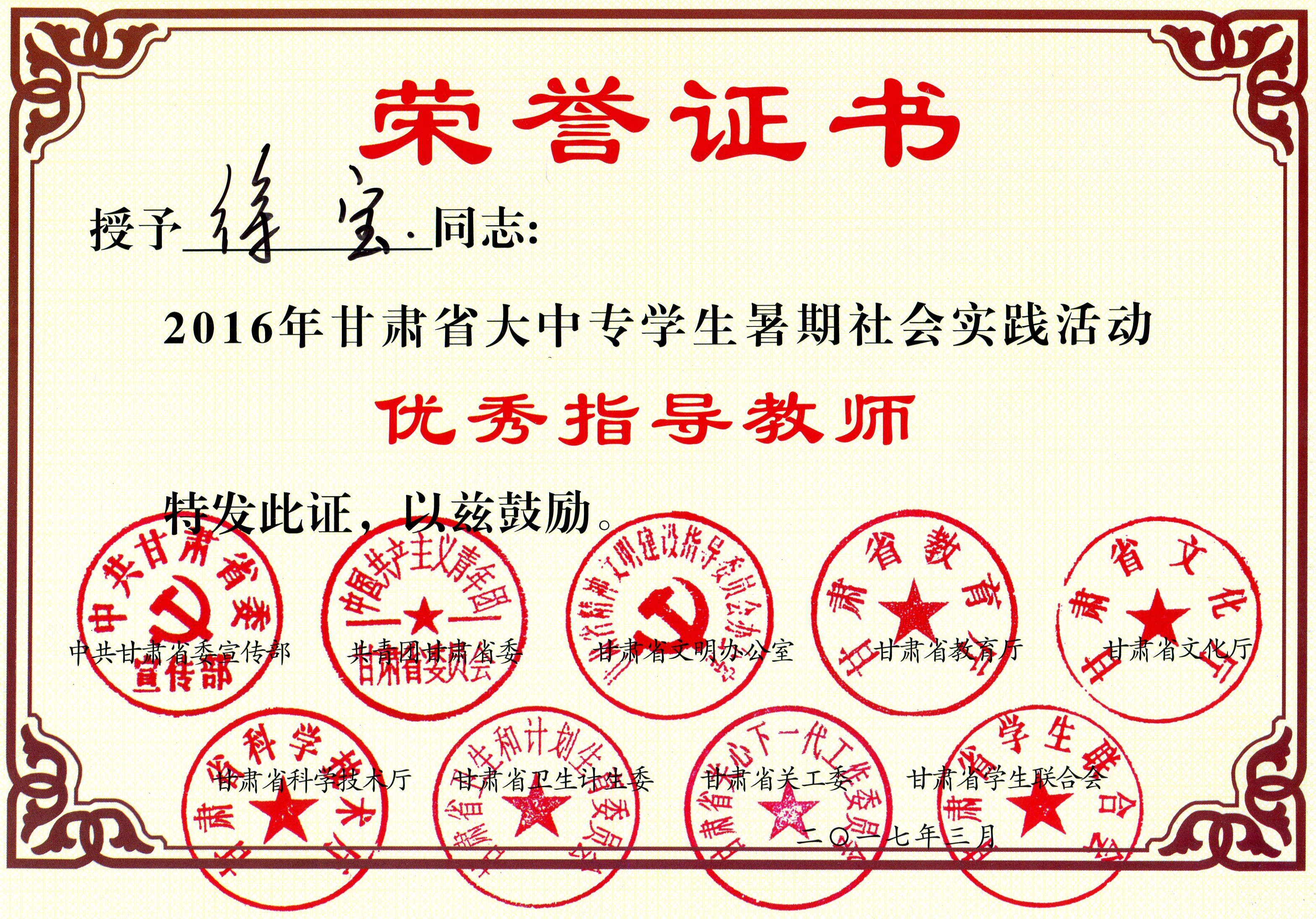 2017年甘肅省大中專學生暑期社會實踐活動“優(yōu)秀指導教師”