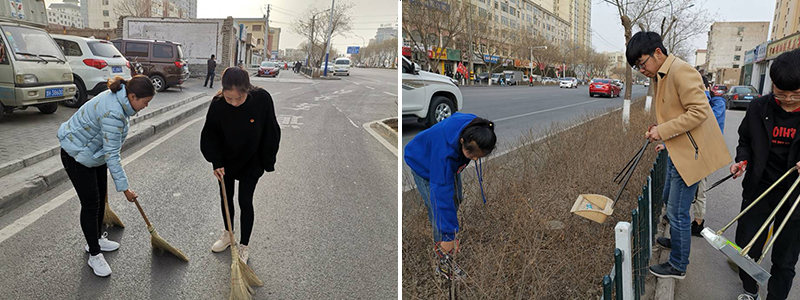 本次活動主要是對學(xué)院周邊街道進(jìn)行清掃,努力為城市民眾營造干凈、整潔、舒適的生活環(huán)境。30多名志愿者手持垃圾袋,將果皮、紙屑、塑料袋、煙蒂、礦泉水瓶等垃圾撿起放入垃圾袋,青年志愿者們分散在街道邊開展清掃垃圾活動。每位志愿者都熱情高漲,他們不怕臟,不怕累,認(rèn)真地把垃圾撿拾干凈,形成一道獨(dú)特的風(fēng)景。路上遇見居民,他們還向居民講解保護(hù)環(huán)境的重要性,倡議要愛護(hù)我們美麗的家園,為大家創(chuàng)造一個良好的生活環(huán)境。