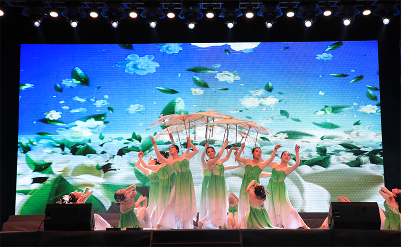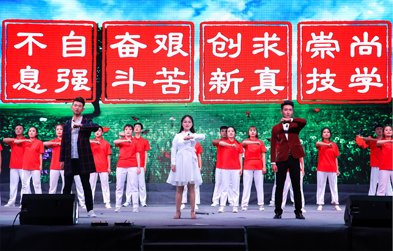 晚會中,在音樂學科專業(yè)頗有建樹的幾位老師表演了高水準的器樂合奏《贊歌》,讓師生陶醉于器樂演奏的優(yōu)美旋律和意境,贏得了全場經(jīng)久不息的掌聲。大學生藝術(shù)團舞蹈隊和聲樂隊表演的歌伴舞《紅旗飄飄》《美麗中國》激情四射、唯美動聽,詮釋了青年學子對祖國的熱愛和深情祝福。人文藝術(shù)教育系選送的現(xiàn)代舞《追逐夢想》用歡快的舞步展現(xiàn)了青年最富有朝氣、最富有夢想的精神風貌,《茉莉花開》更是讓師生陶醉于傳統(tǒng)舞蹈的優(yōu)美意境。雙人舞表演《鄉(xiāng)·遠方》舞蹈動作豪放、粗狂但不失委婉、細致,為我們呈現(xiàn)出“天之驕子”的氣概。校園好聲音教師組冠軍和學生組冠軍合唱的歌曲《你是我的眼》傳唱了職院好聲音,定格了大家的青春記憶。校園二把手樂隊帶來的歌曲《平凡之路》引起全場轟動,將晚會推向了高潮,同學們紛紛點亮了自己的手機,現(xiàn)場匯成了一片充滿歌聲的“星?!?。
