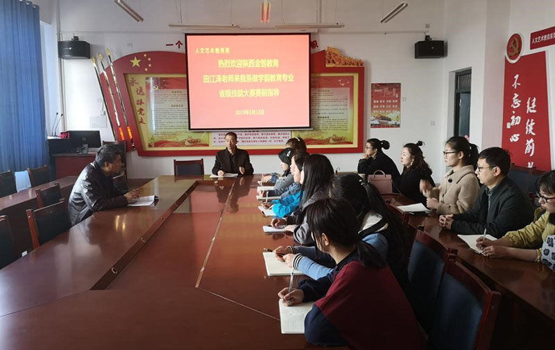 2019年3月13日下午,人文藝術(shù)教育系邀請陜西金智教育集團講師、山西省“國培計劃”學前教育專業(yè)領(lǐng)域客座講師田江濤老師到我系進行了學前教育專業(yè)省級技能大賽專題培訓講座,并對2019年甘肅省職業(yè)院校學前教育專業(yè)技能比賽的流程進行了指導。系副主任李欣、各專業(yè)教師及參賽學生參加。