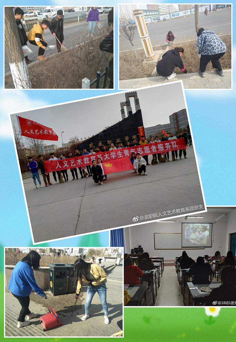 為認真貫徹落實習(xí)近平新時代中國特色社會主義思想和黨的十九大精神,進一步加大弘揚“學(xué)習(xí)雷鋒、奉獻他人、提升自我”的志愿服務(wù)理念,在第56個“雷鋒紀念日”之際,人文藝術(shù)教育系黨總支安排部署,由系分團委組織開展了以“傳承雷鋒精神 共創(chuàng)文明城市”為主題的系列志愿服務(wù)活動。