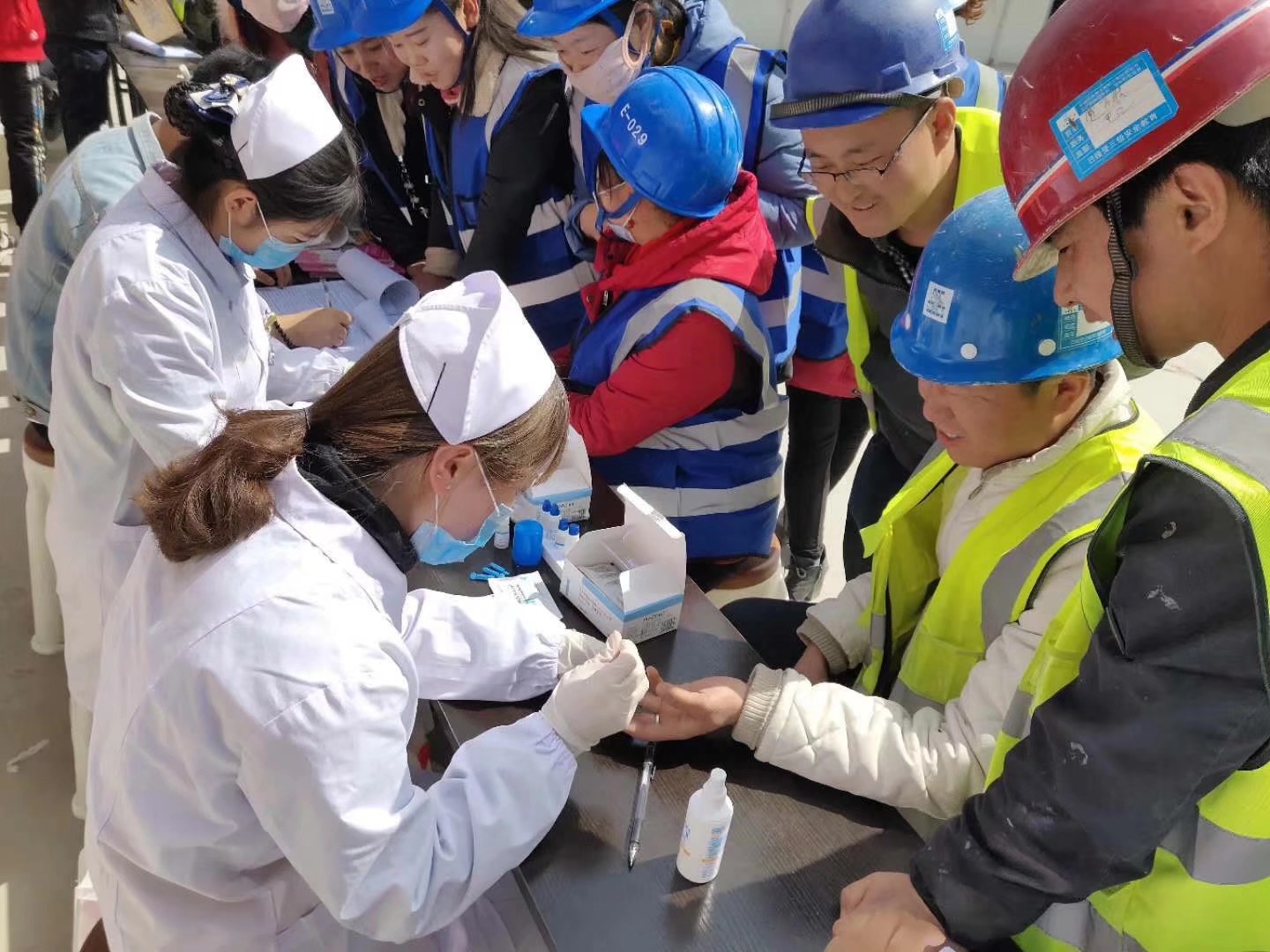 ? ? 到達活動現(xiàn)場后,疾控中心工作人員和志愿者們在聶老師和楊杰的安排下,按照預(yù)定方案迅速進入到工作狀態(tài) ,為工作在那里的300多名農(nóng)民工人測量血壓、檢查視力、檢測丙肝和艾滋病病毒;宣傳健康知識并贈送春季常見傳染疾病及艾滋病病毒預(yù)防宣傳手冊;活動結(jié)束時,還為中建四局的農(nóng)民工人發(fā)放了活動紀念品。