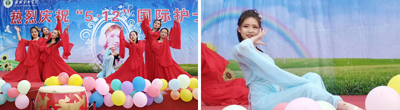 為展示技能大賽獲獎選手風采,參加2019年甘肅省護理技能大賽的獲獎學生代表進行了“心肺復蘇技術”表演,學院第六屆護理技能大賽獲獎選手代表進行了“右踝關節(jié)扭傷包扎技術”表演。之后,進行的文藝演出,為“5.12”慶祝護士節(jié)畫上了圓滿的句號。