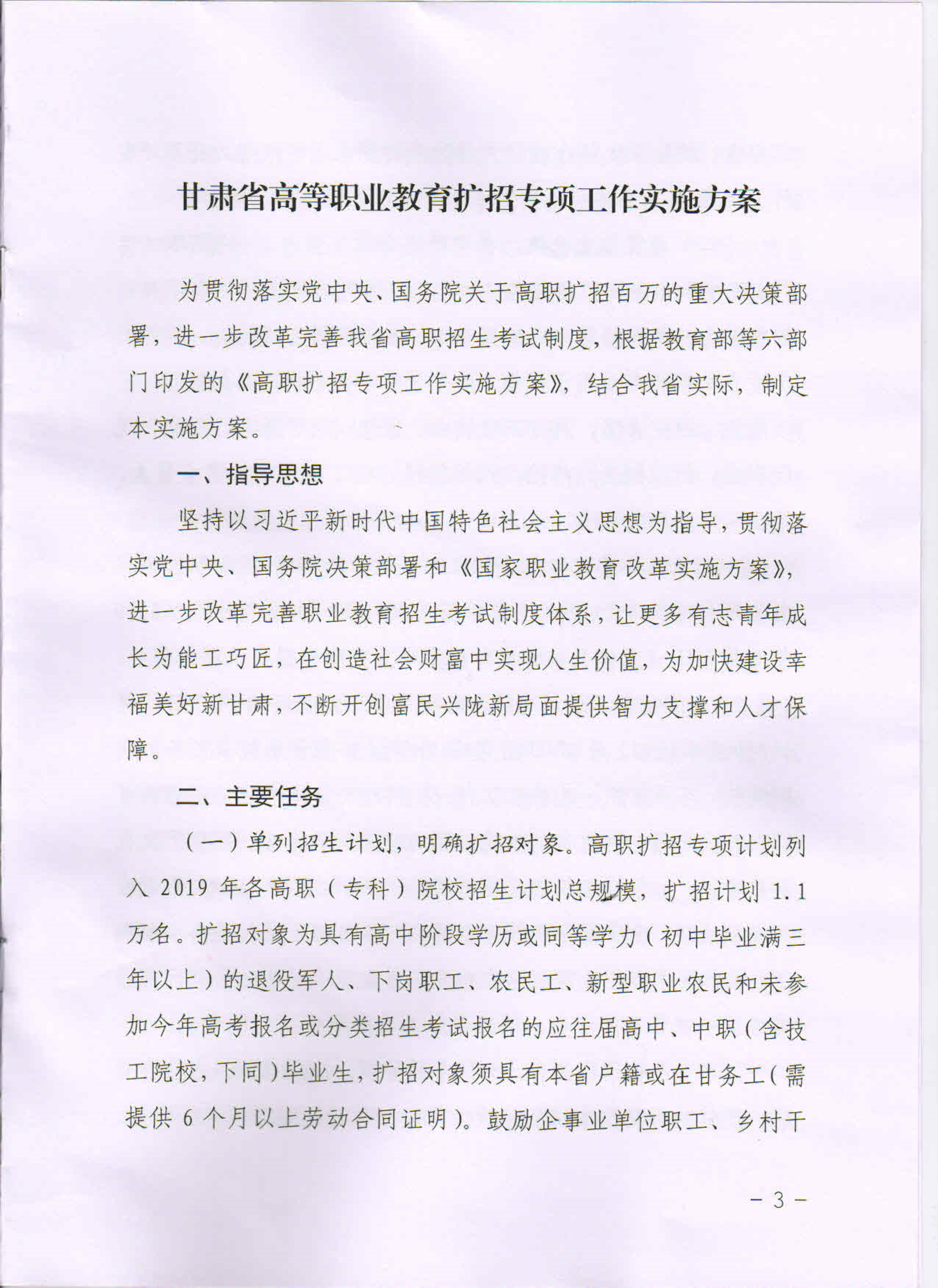 甘肅省高等職業(yè)教育擴(kuò)招專項工作實施方案