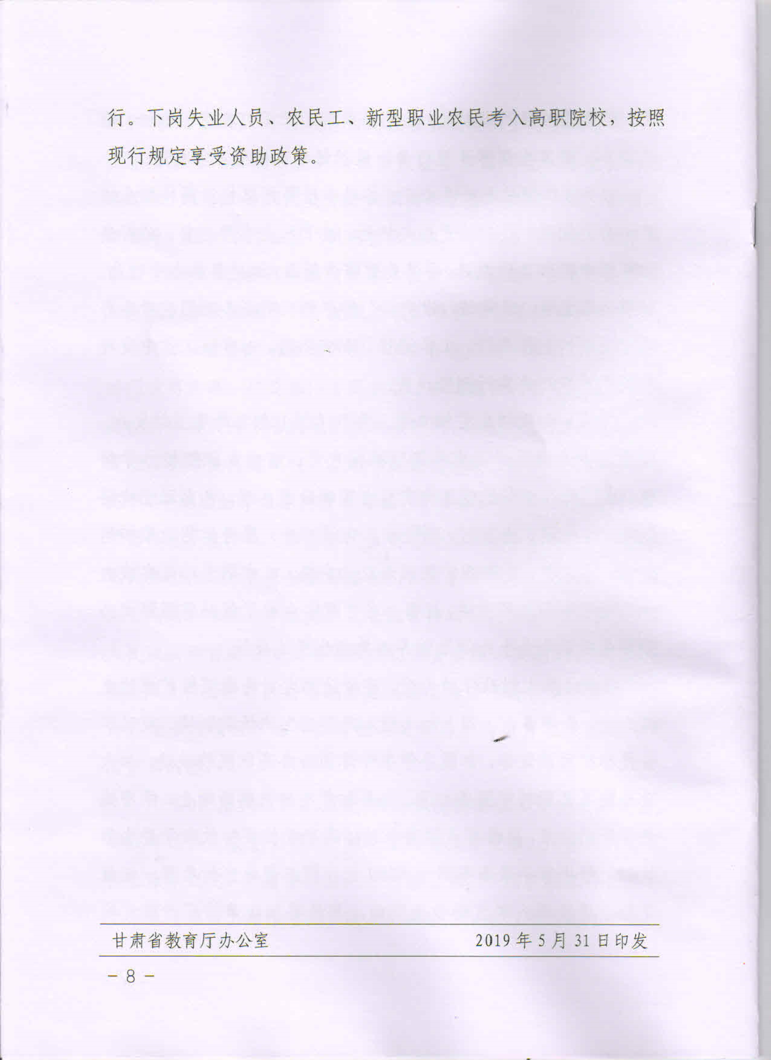 19年關(guān)于做好2019年甘肅省高等職業(yè)教育擴(kuò)招專項…