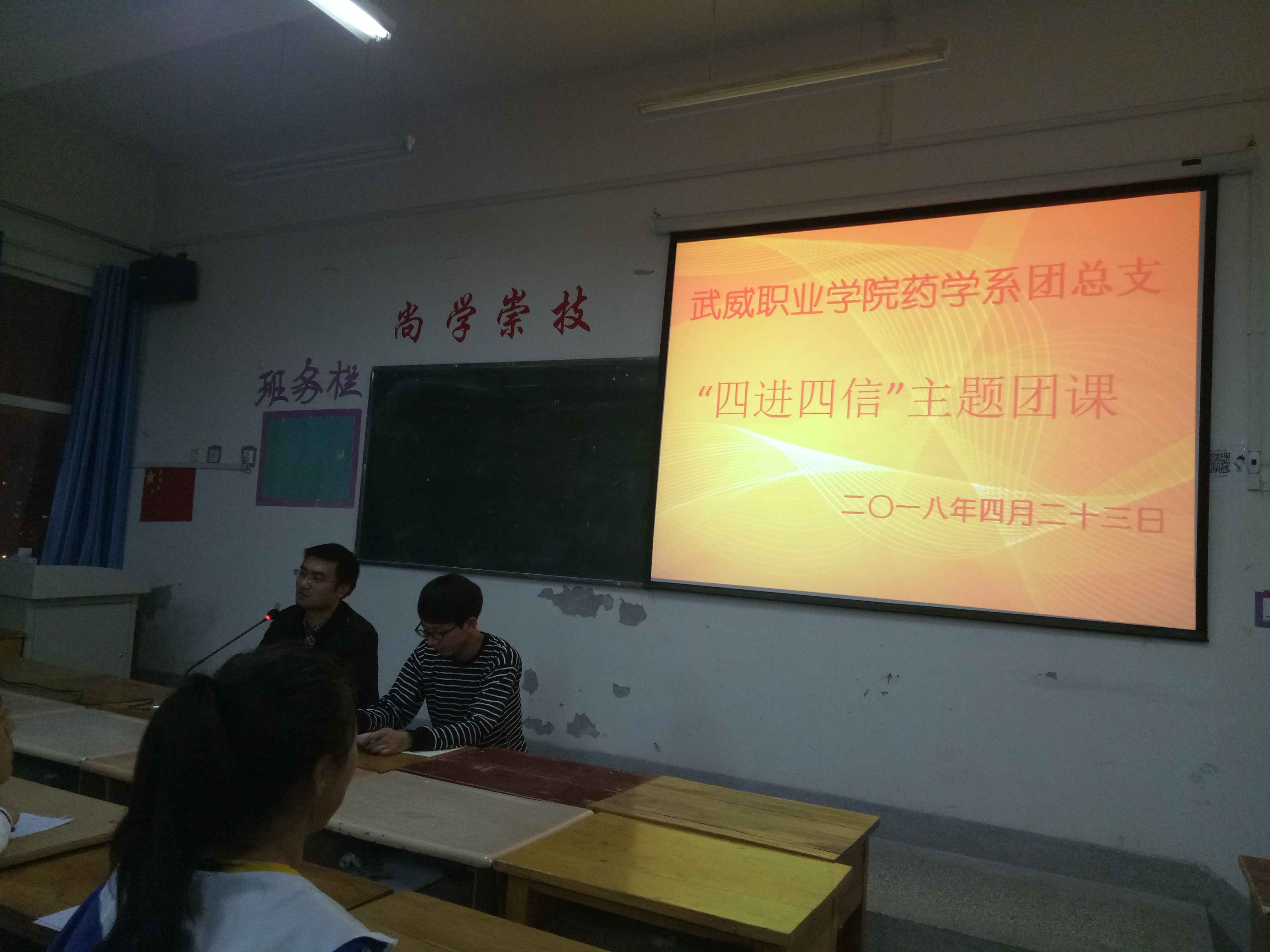 為深入學(xué)習(xí)宣傳貫徹習(xí)近平新時代中國特色社會主義思想,堅持以習(xí)近平新時代中國特色社會主義思想武裝團(tuán)員干部和團(tuán)員青年學(xué)生頭腦,積極推進(jìn)各項工作開展。2018年4月23日晚,藥學(xué)系團(tuán)總支組織16級團(tuán)員青年及17級入團(tuán)積極分子在明遠(yuǎn)樓501教室開展關(guān)于“四進(jìn)四信”的主題團(tuán)課活動,團(tuán)課由系團(tuán)總支書記陳輝生主持。