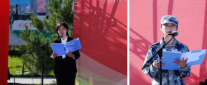 伴隨著莊嚴(yán)肅穆的國歌,大會(huì)正式拉開帷幕。在激昂的音樂聲下,國旗護(hù)衛(wèi)隊(duì)向我們走來,他們目光堅(jiān)毅、身姿矯健、步伐整齊有力,彰顯了須眉巾幗、志在四方的豪情壯志?!安煌跣摹⒗斡浭姑?,“尚學(xué)崇技、求真創(chuàng)新”,“立德樹人、服務(wù)發(fā)展、促進(jìn)就業(yè)、適應(yīng)需要”鏗鏘有力的口號(hào)生動(dòng)的展現(xiàn)了新時(shí)代大學(xué)生的青春風(fēng)貌。