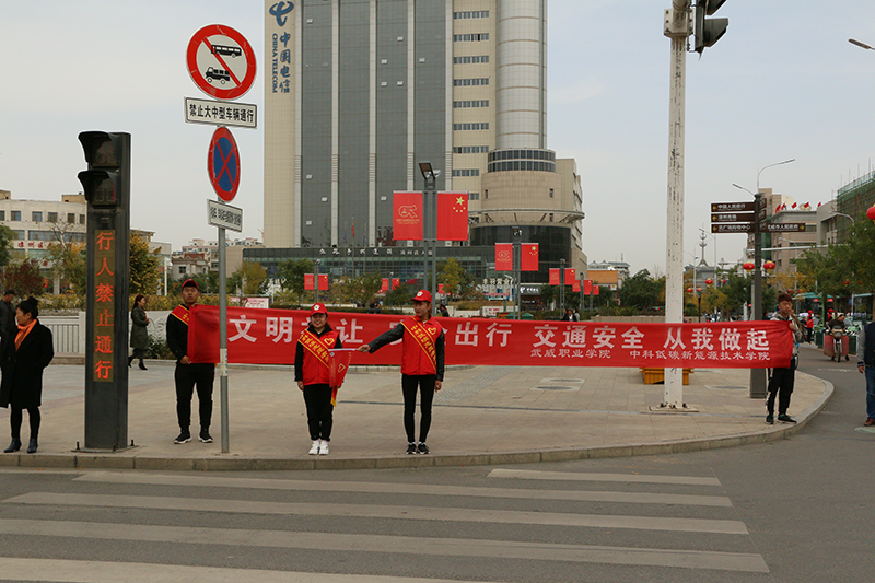 為進一步增強廣大市民的文明交通意識,營造文明、暢通、安全、有序的道路交通環(huán)境,助力武威市創(chuàng)建全國文明城市,10月19日至20日,中科低碳新能源技術(shù)院志愿者到武威市步行街西口大十字路口和北關(guān)十字路口開展“文明交通 安全出行”志愿者服務(wù)活動。