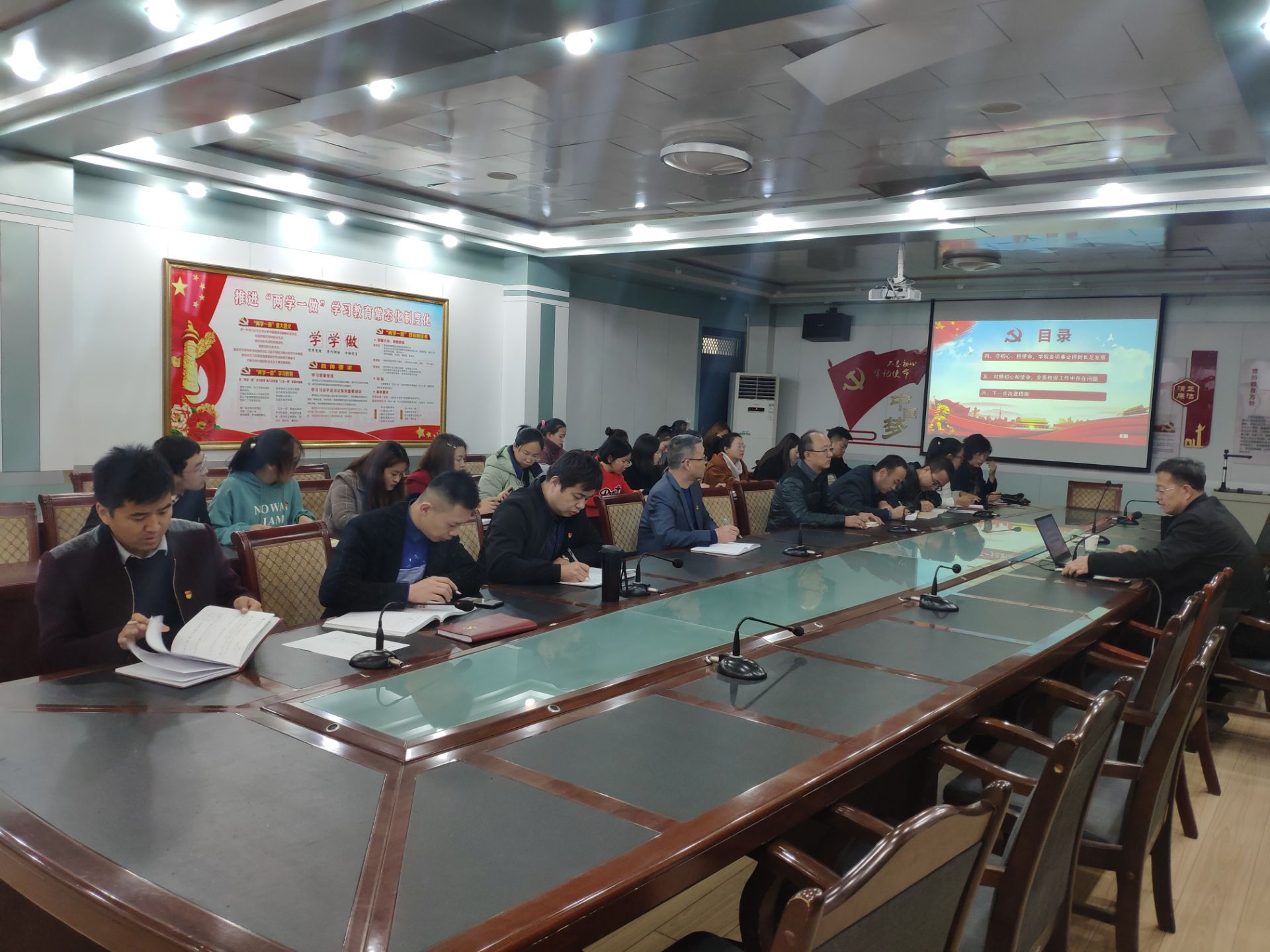 張開禮從“深刻認(rèn)識’不忘初心、牢記使命’主題教育的重大意義”、“強化理論武裝,進(jìn)一步深入學(xué)習(xí)貫徹習(xí)近平新時代中國特色社會主義”、“以習(xí)近平新時代中國特色社會主義思想為指導(dǎo),努力辦好人民滿意的高職教育”“守初心、擔(dān)使命,學(xué)院各項事業(yè)得到長促發(fā)展”、“對照初心和使命,全面檢視工作中存在的問題”等五個方面,為全體與會黨員進(jìn)行了詳細(xì)的輔導(dǎo)講解。