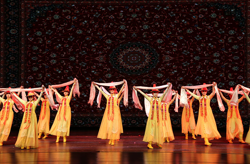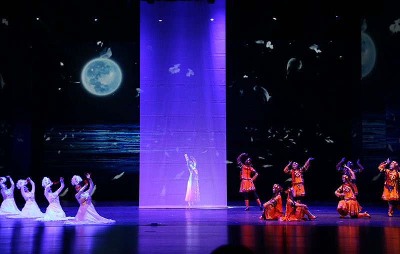 大型歌舞劇《裕固風(fēng)華》是河西學(xué)院師生歷經(jīng)三年精心打造的首部原創(chuàng)教學(xué)劇目,是教育部、文化和旅游部、財政部高雅藝術(shù)進校園活動省級巡演劇目,是省委宣傳部和省文旅廳“春綠隴原”展演劇目,是甘肅省學(xué)校美育改革與發(fā)展重大項目、甘肅省高校美育教育舞臺示范精品。全劇由《序》《東遷》《家園》《傳說》《婚禮》五個篇章組成,以裕固族傳統(tǒng)民歌、舞蹈、民俗為載體進行創(chuàng)作和改編,以情景歌舞的形式表現(xiàn)裕固族的歷史變遷和民俗文化,以講述、吟誦、歌舞的手法,再現(xiàn)了裕固族的發(fā)展歷史和多姿多彩的獨特文化,以高品位的藝術(shù)水準弘揚、展現(xiàn)了中華民族傳統(tǒng)文化的優(yōu)良基因和時代活力。
