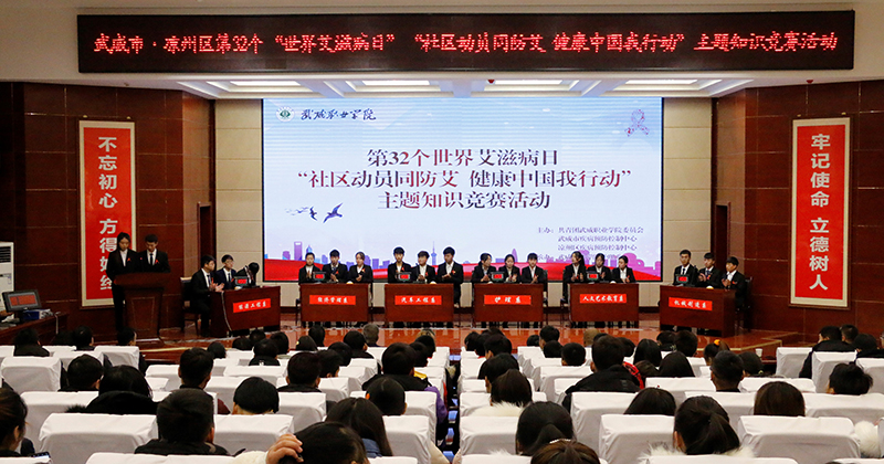 為持續(xù)深入推進(jìn)大學(xué)生艾滋病預(yù)防教育工作,迎接第32個(gè)世界艾滋病日的到來, 12月1日晚,學(xué)院開展了艾滋病知識競賽活動,學(xué)院副院長王永緒、王守云,市疾控中心領(lǐng)導(dǎo)參加活動。此次活動由武威職業(yè)學(xué)院與武威市疾控中心聯(lián)合主辦,護(hù)理系承辦,活動的主題為“社區(qū)動員同防艾 .健康中國我行動”。學(xué)院團(tuán)委及部分系老師,各系學(xué)生代表觀看了比賽。