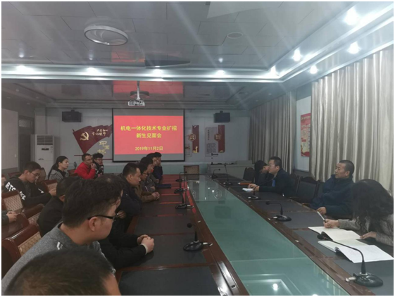 11月2日,機械制造系在博學樓黨員活動室組織召開了2019機電一體化技術專業(yè)擴招新生見面會。黨總支書記梁忠,班主任徐寶,任課教師以及全體新生參加了會議。