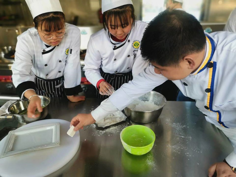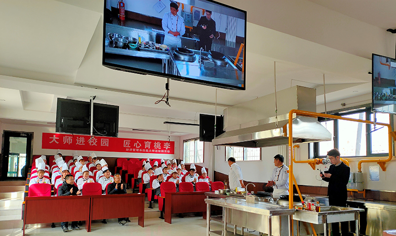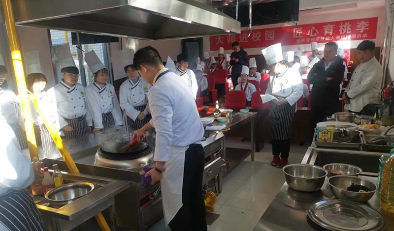 2019年12月13日,王品(中國)餐飲有限公司西安店主廚畢朝威,12月26日,山東藍(lán)海集團(tuán)大廚郭玉忠分別為經(jīng)濟(jì)管理系烹調(diào)工藝與營養(yǎng)專業(yè)120多名學(xué)生進(jìn)行鵝肝制作、果盤制作、面點(diǎn)制作、熱菜制作的廚藝表演,并在現(xiàn)場與系部領(lǐng)導(dǎo)交流、對學(xué)生分享廚藝心得和技術(shù)要領(lǐng)。
