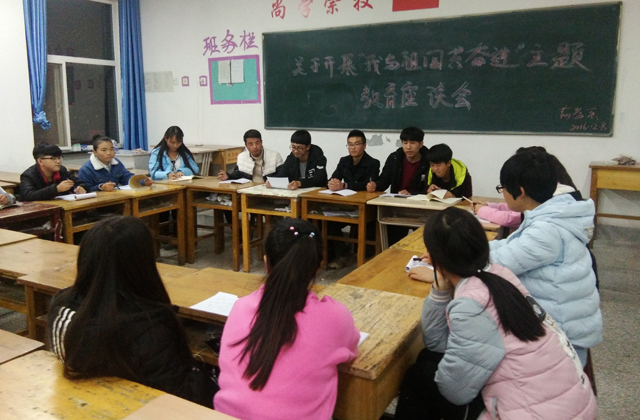 通過組織各班團干部開展 “我與祖國共奮進”主題座談會,讓團干部們對歷史有了深刻的了解,也讓同學們在這次座談會中深刻領(lǐng)悟到身為中華兒女要勿忘恥辱,為實現(xiàn)中華民族偉大復興的中國夢而勤奮學習。同時,各班團支部以形式多樣的主題團會,表達出為了實現(xiàn)“中國夢”,讓屈辱的歷史不再重演,將要萬分珍惜今天這來之不易的和平生活,努力學習,不斷進取。