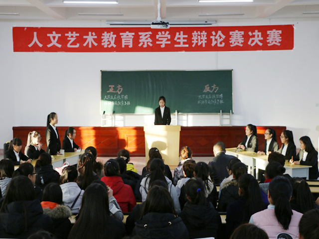 12月27日下午,人文藝術教育系學生辯論賽決賽在勵勤樓階梯教室舉行,近200名師生觀看了本場比賽。