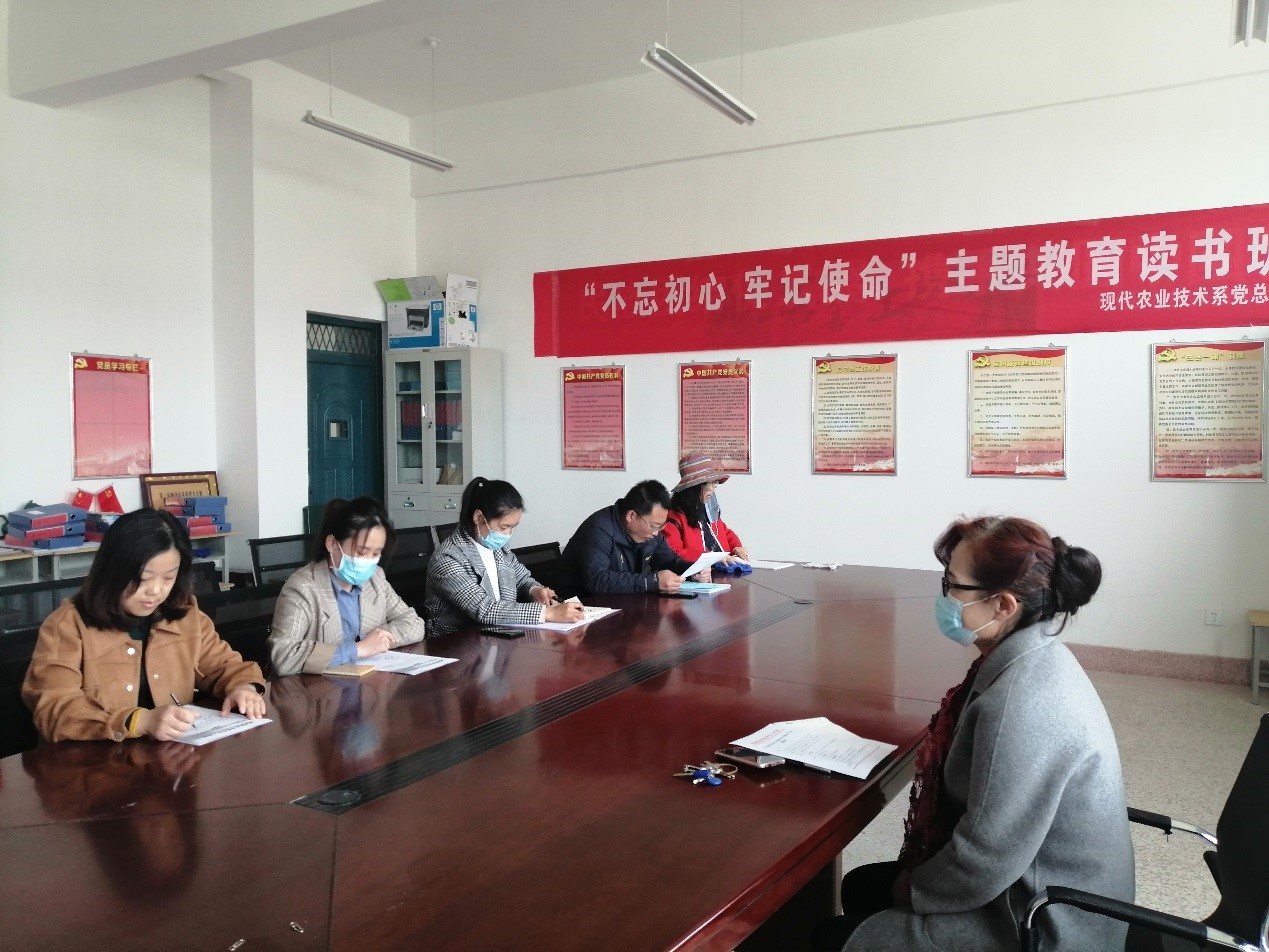 4月22日下午,現(xiàn)代農(nóng)業(yè)技術(shù)系在行樹樓教學區(qū)309會議室召開班主任工作會議,全體班主任及輔導員參加了此次會議,會議由現(xiàn)代農(nóng)業(yè)技術(shù)系黨總支書記晏素珍同志主持。