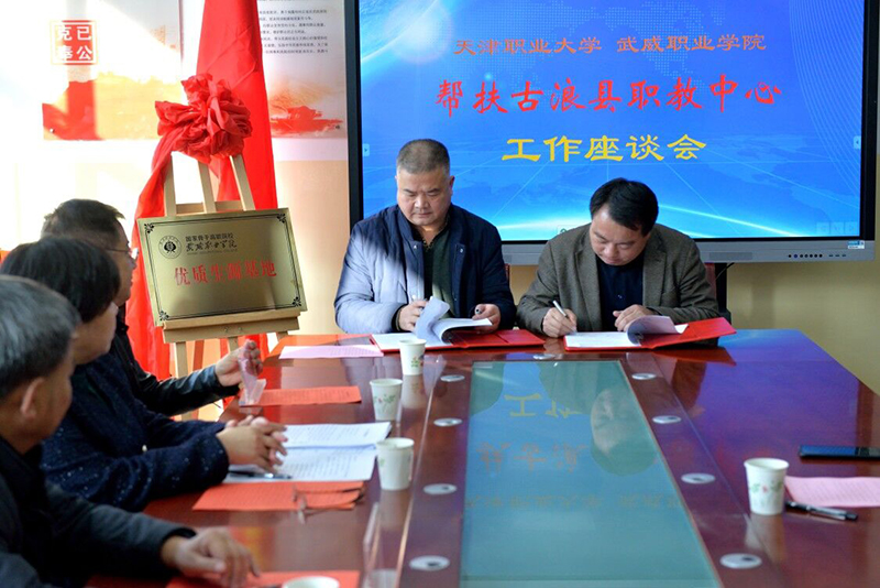 對接會上,趙明為古浪職教中心頒授“優(yōu)質(zhì)生源基地”牌匾,簡要介紹了學院近年來取得的重要辦學成果。他表示,學院今年顯著加強了同古浪職教中心的合作力度,今后還要擴大合作培養(yǎng)專業(yè),全方位深化合作關(guān)系,共同培養(yǎng)職業(yè)技能人才。他強調(diào),通過兩校的合作辦學,我們要取長補短,促進中高職貫通培養(yǎng)大力發(fā)展。會上,王守云同古浪職教中心校領(lǐng)導(dǎo)簽署了“2020年中高職貫通培養(yǎng)辦學合作協(xié)議”。