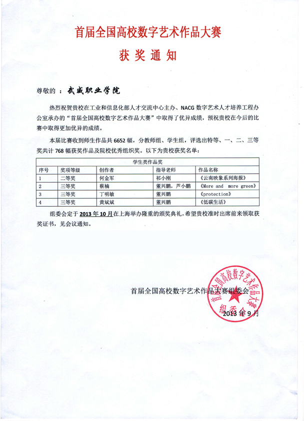 自合作以來(lái),取得了較好的建設(shè)成果,共完成各類(lèi)學(xué)生設(shè)計(jì)師認(rèn)證110人次,組織10級(jí)動(dòng)漫設(shè)計(jì)與制作專(zhuān)業(yè)學(xué)生赴上海參加崗位實(shí)訓(xùn)1次,培訓(xùn)認(rèn)證教師12人。在2013年6月由工業(yè)和信息化部人才交流中心主辦的“首屆全國(guó)高校數(shù)字藝術(shù)作品大賽”中,我院藝術(shù)系10級(jí)圖形圖像制作專(zhuān)業(yè)學(xué)生何金軍、10級(jí)電腦藝術(shù)設(shè)計(jì)專(zhuān)業(yè)學(xué)生蔡楠、丁明敏、黃斌斌、分獲二等獎(jiǎng)和三等獎(jiǎng)。