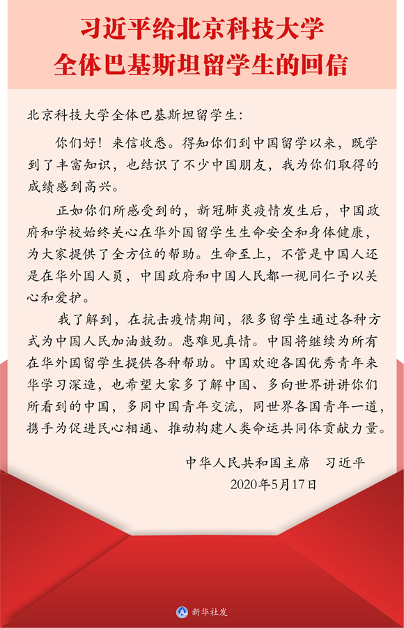 專題會(huì)后,國(guó)際合作與交流處工作人員組織留學(xué)生召開(kāi)學(xué)習(xí)貫徹習(xí)近平總書(shū)記給北京科技大學(xué)全體巴基斯坦留學(xué)生回信精神專題視頻座談會(huì)。會(huì)議要求,全體留學(xué)生要認(rèn)真學(xué)習(xí)回信,要深刻領(lǐng)會(huì)回信的重大意義,要深刻領(lǐng)會(huì)回信的真情實(shí)感。留學(xué)生們一致對(duì)學(xué)院在新冠肺炎疫情暴發(fā)后給予的關(guān)心表示感謝,表示學(xué)有所成后要投身“一帶一路”建設(shè)、為增進(jìn)中外友誼做出貢獻(xiàn)。