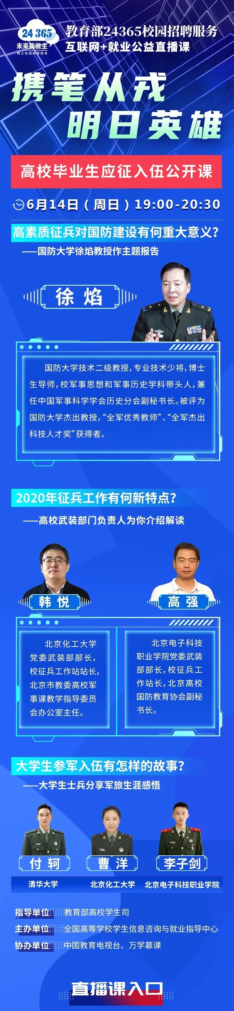 教育部24365就業(yè)公益課程:攜筆從戎 明日英雄——高校畢業(yè)生應征入伍公開課