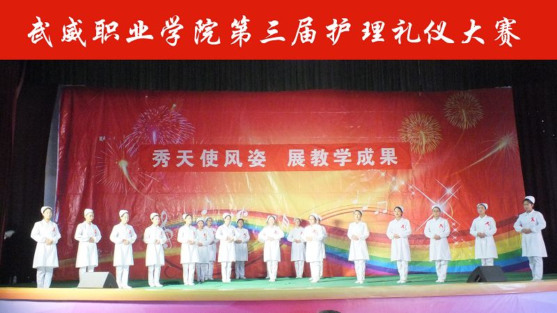 為推進(jìn)校園文化建設(shè),強(qiáng)化學(xué)生專業(yè)思想,提升學(xué)生職業(yè)素質(zhì),12月27日下午,在學(xué)院大禮堂舉辦了“武威職業(yè)學(xué)院第三屆護(hù)理禮儀大賽”, 學(xué)院黨委副書(shū)記趙明、副院長(zhǎng)潘玉華、副院長(zhǎng)田迎春、教務(wù)處副處長(zhǎng)賈龍應(yīng)邀出席本次活動(dòng),護(hù)理系書(shū)記張建輝、系主任韓曉萍及護(hù)理系1200多名師生觀看了比賽。