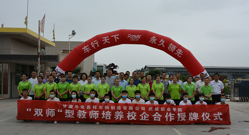 2020年7月9日上午9時(shí),武威職業(yè)學(xué)院和甘肅牛電森祥車輛制造有限公司校企合作授牌儀式在牛電森祥廠區(qū)舉行。武威職業(yè)學(xué)院黨委副書記翟存祥同志,武威職業(yè)學(xué)院黨委委員、副院長(zhǎng)張開禮、王守云同志,涼州區(qū)工業(yè)園區(qū)黨工委書記張?chǎng)我约皡^(qū)科技局、工信局分管領(lǐng)導(dǎo)出席了授牌儀式。