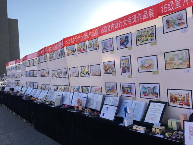 此次展覽共計展出作品1000余件,由學前教育、室內(nèi)設(shè)計和數(shù)字媒體3個專業(yè)學生共同展出,涉及到裝飾畫、平面構(gòu)成、立體構(gòu)成、家具陳設(shè)、室內(nèi)設(shè)計制圖與手繪效果表現(xiàn)等6門課程,作品內(nèi)容豐富,形式多樣,充分展示了學生們的藝術(shù)創(chuàng)作風采。