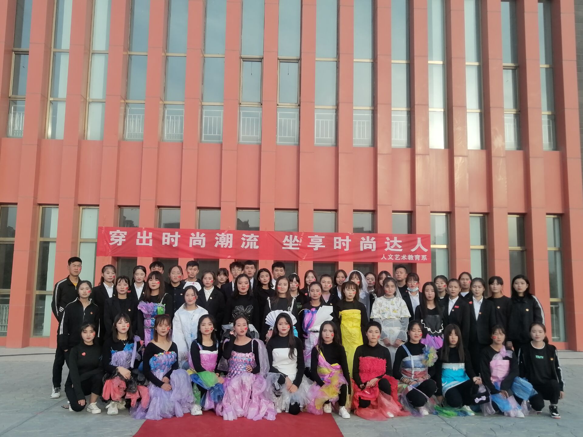 為了營造學(xué)院的多元化文化氛圍,增強和激發(fā)學(xué)院學(xué)生的創(chuàng)新與設(shè)計能力,也為讓同學(xué)們在漫長的國慶假期中感受到歡樂,同時展示學(xué)院學(xué)生青春、健康、自信、時尚的新時代大學(xué)生形象,武威職業(yè)學(xué)院人文藝術(shù)教育系特此于2020年10月5號下午4:30分在大學(xué)生活動中心前廣場舉辦“創(chuàng)意服裝秀”活動。