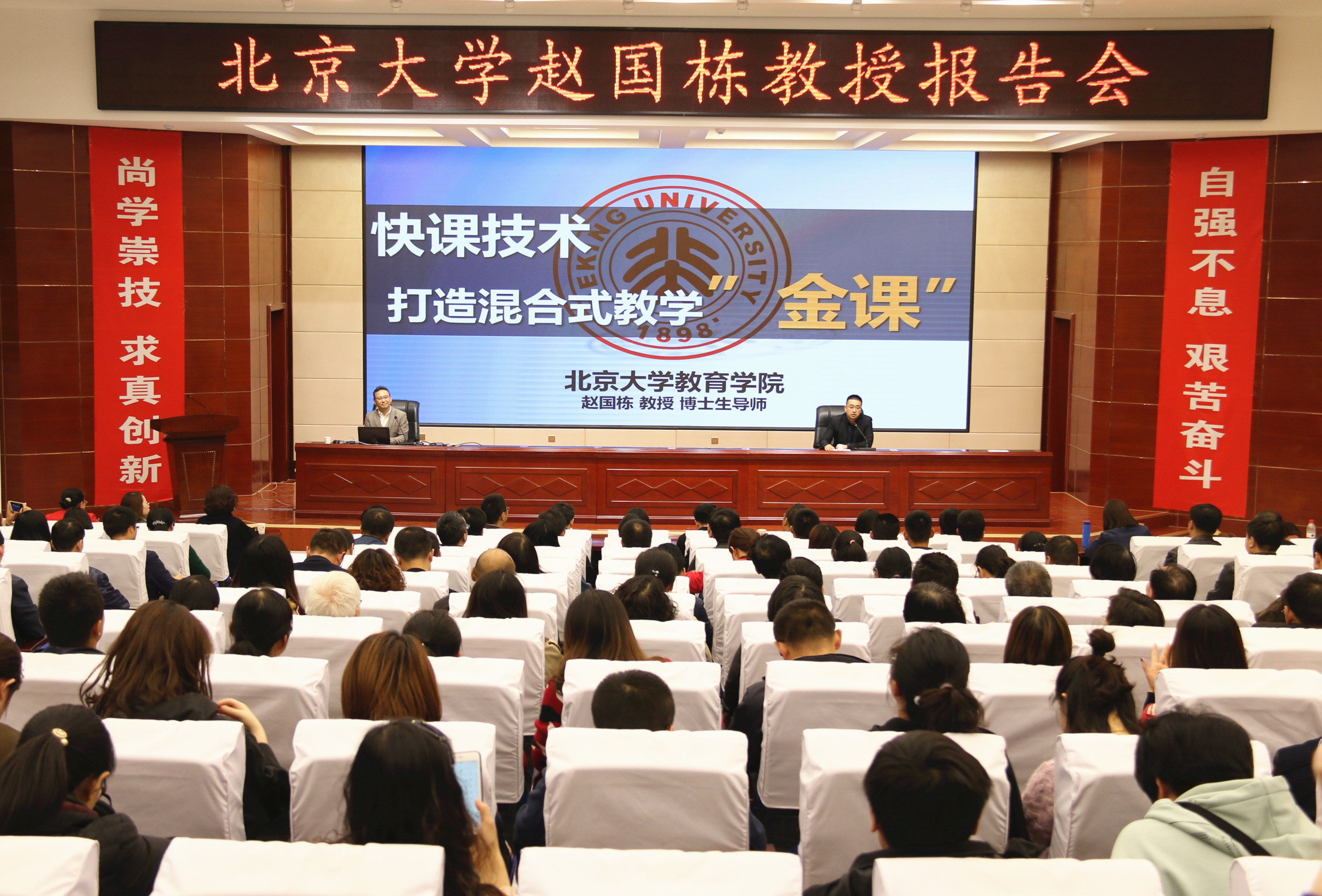 4月15日,北京大學(xué)博士生導(dǎo)師,微課技術(shù)實(shí)驗(yàn)室主任,“國(guó)際信息研究學(xué)會(huì)”(IS4IS)中國(guó)分會(huì)教育信息化專業(yè)委員會(huì)副主任, “中國(guó)開(kāi)放式教育資源協(xié)會(huì)”(CORE)專家趙國(guó)棟教授,應(yīng)邀到學(xué)院作專題報(bào)告。 教務(wù)處副處長(zhǎng)張世亮主持報(bào)告會(huì),甘肅冶金職業(yè)技術(shù)學(xué)院、甘肅畜牧工程學(xué)院、武威職業(yè)教育集團(tuán)、蘭州交通大學(xué)新能源與動(dòng)力工程學(xué)院以及各系教師代表220人聆聽(tīng)了報(bào)告。